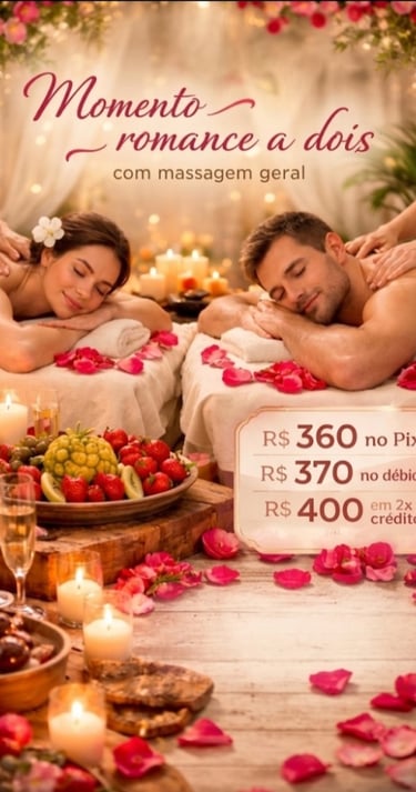 Desfrute de um momento exclusivo de conexão e bem-estar em um ambiente cuidadosamente preparado para relaxamento profundo. A experiência para casais combina técnicas de massagem terapêutica com uma atmosfera acolhedora, proporcionando equilíbrio físico e renovação emocional em perfeita harmonia.