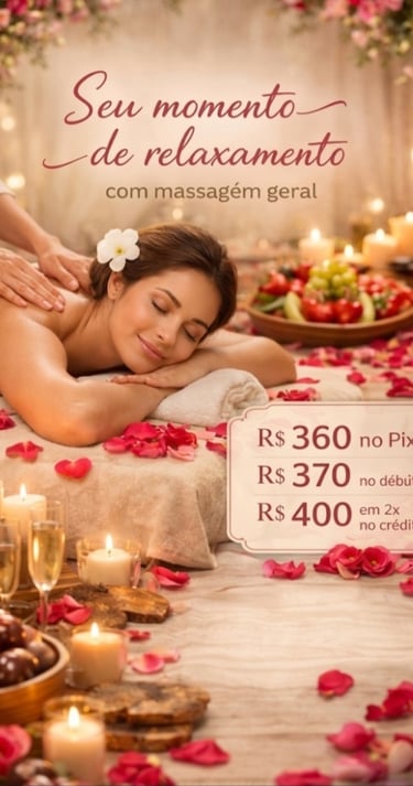 Permita-se uma pausa revigorante com um atendimento personalizado voltado ao seu bem-estar. A massagem geral promove alívio de tensões, melhora da circulação e relaxamento integral, em um ambiente sofisticado e tranquilo, ideal para restaurar corpo e mente.